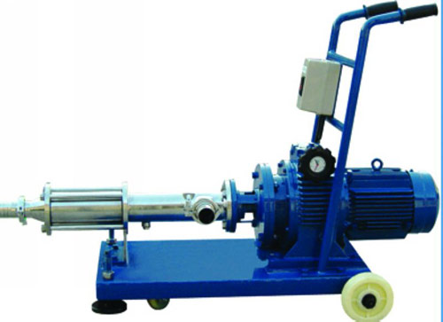輸螺桿漿泵為一容積式濃漿泵,是葡萄除梗破碎機(jī)的配套設(shè)備,用于輸送葡萄果漿。也可單獨(dú)使用用于輸送果漿類物料,可按輸送物料的要求做成耐高溫型的。該泵采用直聯(lián)式減速機(jī)傳動,結(jié)構(gòu)緊湊,帶移動車輪,移動方便,造型美觀,與果漿接觸部分為不銹鋼制造。