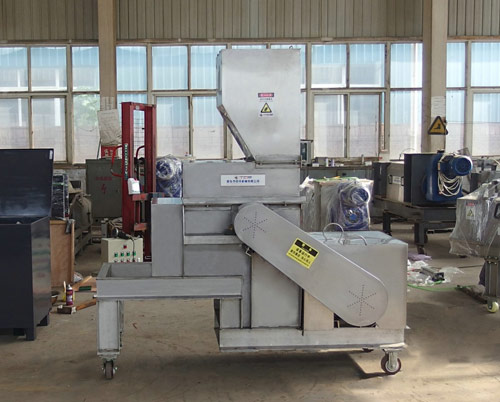 2、針對(duì)長(zhǎng)纖維物料全自動(dòng)輸送帶壓輥進(jìn)料,壓輥可根據(jù)物料的厚度自動(dòng)升降,出料螺旋輸送。特別適合大批量作業(yè),可以抓車(chē)、鏟車(chē)上料。